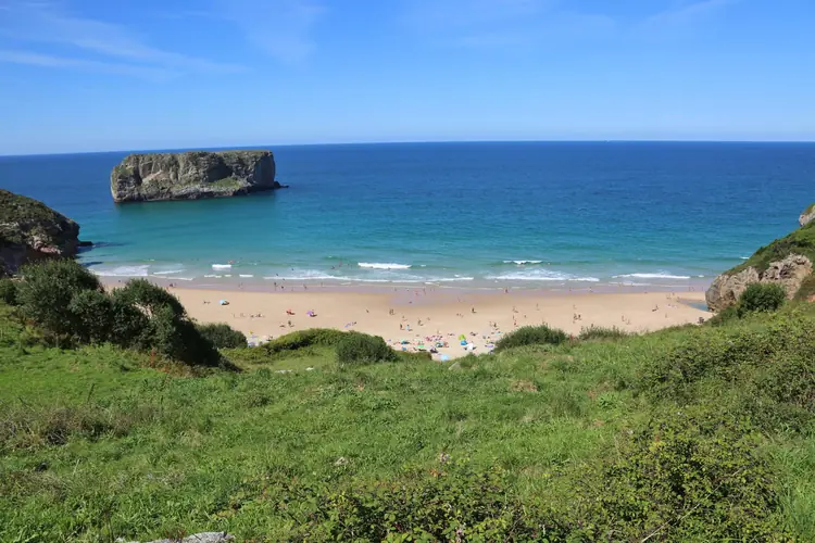 Playa de Andrín. La popular y apreciada playa de Andrín se reconoce desde el mirador de La Boriza, siguiendo el oriente, en el marco de un majestuoso panorama dominado por planas sierras como La Borbolla, la caliza de las playas y el contraste e ...